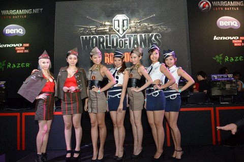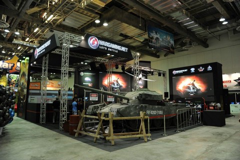บูธของบริษัท วอร์เกมมิ่ง (Wargaming) ภายในงาน License 2 Play ที่ประเทศสิงคโปร์