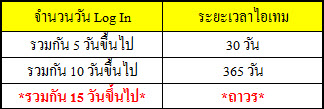 ระยะเวลาไอเทม ที่ขึ้นกับจำนวนวันที่ Log In
