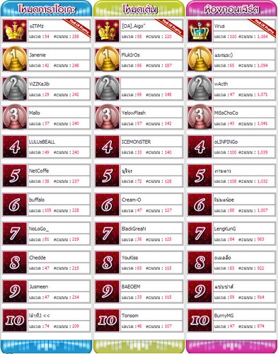 – Hall Of Frame จะเก็บชื่อผู้ที่ทำคะแนนได้สูงสุด โดยจะไม่ถูกลบออกไปในแต่ละเดือน รายชื่อจะเปลี่ยนไปเฉพาะในกรณีที่มีคำทำคะแนนได้สูงกว่าเท่านั้น
