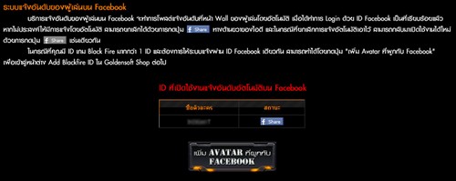 – ผู้เล่นที่เคยเชื่อม ID Black Fire กับ ID Facebook ใน Goldensoft Shop แล้วระบบจะยังคงข้อมูลเดิม