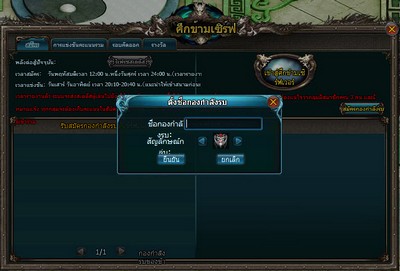 3. หัวหน้าทีมต้องสมัครโดยคลิกปุ่ม “สมัครกองกำลังรบ” จากนั้นทำการตั้งชื่อทีม และเลือกสัญลักษณ์ทีม เมื่อเลือกเสร็จแล้วให้กดปุ่ม “ยืนยัน” เพื่อเสร็จสิ้นการสมัคร