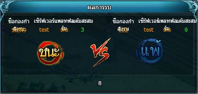 5. ทุกครั้งที่สิ้นสุดการต่อสู้ จะปรากฏหน้าต่างแสดงผลแพ้-ชนะของรอบนั้นๆ