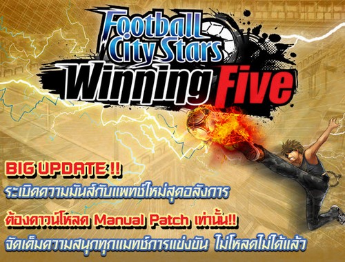 ถึงเวลาแล้วที่ทุกสนามจะเต็มไปด้วยความสนุกครั้งใหม่ที่เหนือชั้น มันส์เว่อร์ กับเกม Football city stars ฟุตบอลแฟนตาซีออนไลน์ จากค่าย PlayPark เตรียมส่ง patch ใหม่สุดอลังการลงสนามฟาดแข้งในวันที่ 28 มกราคมที่จะถึงนี้ โดยมีชื่อตอนใหม่สุดเฟี้ยวว่า Winning Five ขอบอกเลยว่าเป็น patch ใหญ่มากๆ ไม่สามารถอัพเดทด้วย Auto patch ได้ โดยเพื่อนๆ ต้องทำการโหลด Manual patch เท่านั้นถึงจะเข้าไปมันส์เว่อได้ โดยจะมีระบบเพิ่มขึ้นมาดังนี้