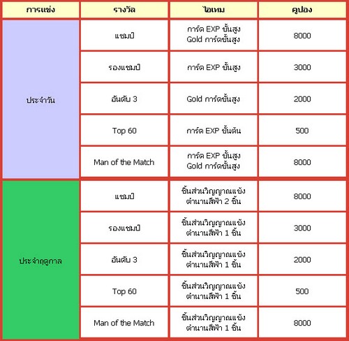 4. ผู้เล่นจะได้รับรางวัลประจำวันและประจำฤดูกาลตามคะแนนที่ทำไว้