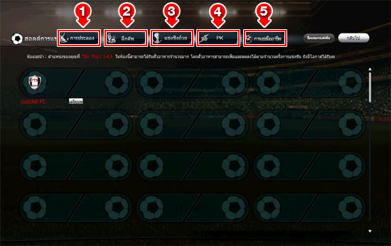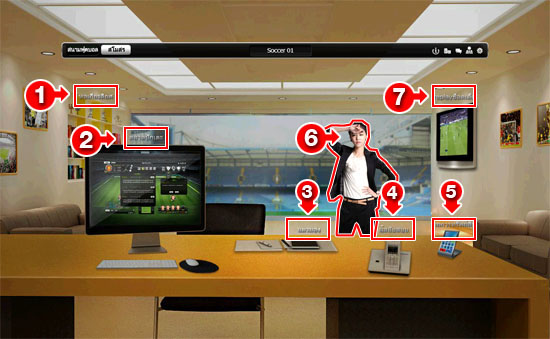 1. หน้าถ่ายทอดสด : หากคลิกที่เมนูนี้ คุณจะได้ชมภาพช็อตเด็ดการแข่งขัน,แสดงภาพเคลื่อนไหวของทีมคุณและคู่แข่งอย่างจุใจ