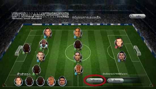 2. การปรับแต่งทีม : ในส่วนนี้คุณสามารถปรับเปลี่ยนแท็กติกการแข่งขัน และเปลี่ยนตัวสำรองได้
