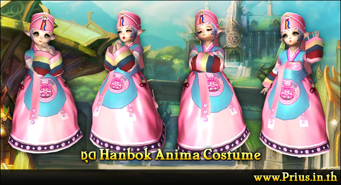 พิเศษสุดๆ ปิดท้ายด้วยของขวัญปีใหม่โดนใจ จัดให้สำหรับ Anima Master เกมเมอร์ขั้นเทพที่มีเลเวล Max (เลเวล 25) ในช่วง Close Beta เท่านั้น ที่จะได้เป็นเจ้าของ Hanbok Anima Costume หรือชุดประจำชาติเกาหลีสีชมพูน่ารักสำหรับ Anima และที่สำคัญยังเป็นแบบถาวรอีกด้วย แจกไม่อั้นขนาดนี้ บอกได้คำเดียวว่าไม่ควรพลาดโอกาสร่วมสนุกกับกิจกรรมดีๆ ที่ Prius Online นะคะ ^^