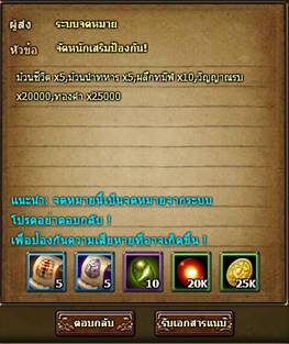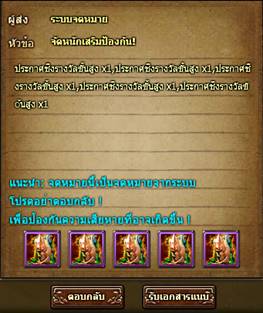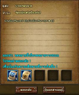 – กดปุ่มตรงรูปจดหมาย >>> รับเอกสารแนบ (เพื่อรับไอเทม)