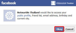 3.2 เมื่อมีป๊อบอัพปรากฎขึ้น ให้กด OK  เพื่อยืนยันการใช้ข้อมูล Facebook เพื่อเล่นเกมเศรษฐี