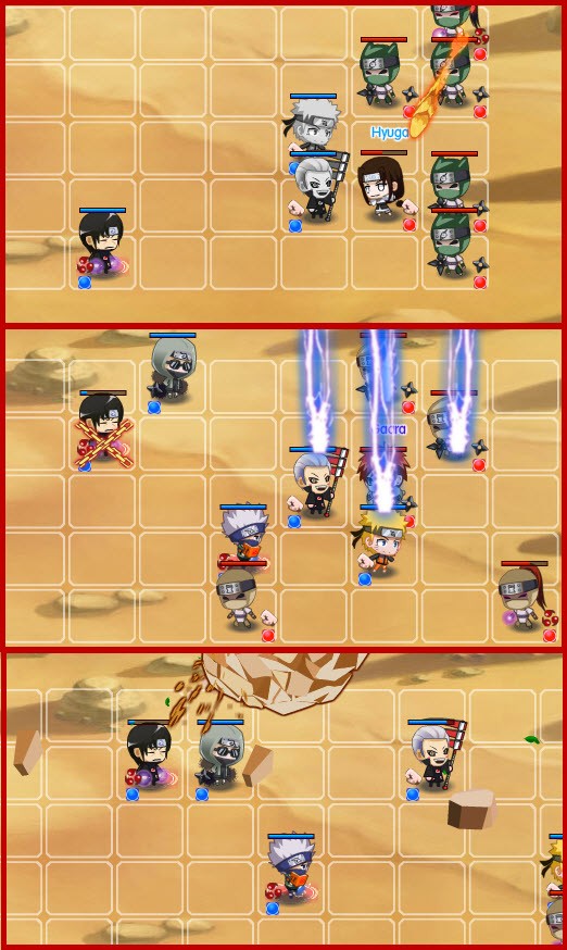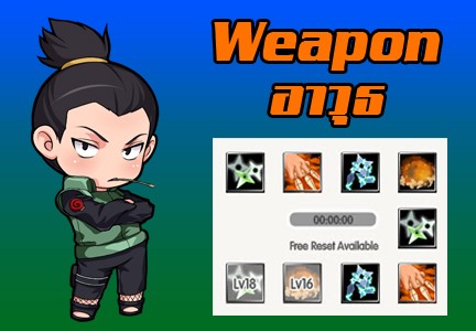 อาวุธ นินจาพริ้วไหวรวดเร็ว เป็นสายนินจาโจมตีระยะไกลรุนแรง ช่องการเดินอยู่ในระยะกลาง เป็นนินจาที่เอาไว้ต่อสู้กันนินจาสายคาถาโดยเฉพาะโจมตีทีเดียวถึงตายได้ มีสกิลโจมตีกลุ่มอยู่บ้างแต่ไม่หลากหลายนักและไม่แรงเท่านินจาสายคาถา
