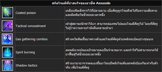 ตัวอย่างสกิลของอาชีพ Assassin ที่น่าสนใจ