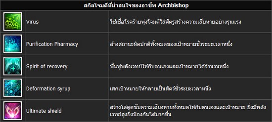 ตัวอย่างสกิลของอาชีพ Archbishop ที่น่าสนใจ