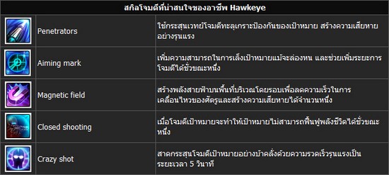ตัวอย่างสกิลของอาชีพ Hawkeye ที่น่าสนใจ