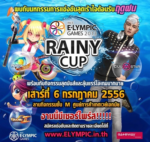 ได้เวลาระเบิดความมันส์กันอีกครั้งต้อนรับฤดูฝน Ini3 E-LYMPIC Games กับการแข่งขันของ 3 เกมออนไลน์ระดับเมพ ได้แก่ เกม Pangya, เกม Club Mstar และเกม BOOMz เฟ้นหาแชมป์คนใหม่ประจำ Season Rainy Cup ชิงทุนการศึกษา และของรางวัลรวมกว่า 60,000 บาท