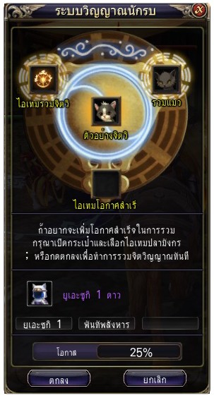 หมายเหตุ : หากผสานล้มเหลวจะไม่มีการเปลี่ยนแปลงใดๆ และคีย์ไอเทม ไอเทมที่ใช้ในการผสานจะหายไป