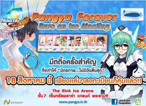 ความสนุก ความประทับใจกำลังจะกลับมา กิจกรรมใหญ่ครบรอบ 8 ปีเกม Pangya กิจกรรมที่ชาวปังย่ารอคอย Pangya Meeting โดยในครั้งนี้ ขอเชิญชวนเพื่อนๆ ชาวปังย่ามาคลายร้อนกัน ในวันอาทิตย์ที่ 18 สิงหาคม 2556 ณ ลานไอซ์สเก็ต The Rink Ice Arena ชั้น 7 เซ็นทรัล แกรนด์ พระราม 9