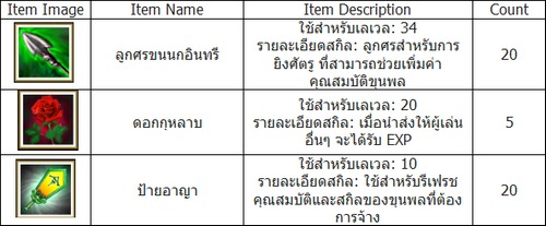 โดย 1 Serial Item ประกอบด้วยไอเทมดังนี้