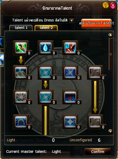 อย่างไรก็ตามหากเลือกเรียนทั้ง 2 สายจะต้องเสียเงิน 1,000 เหรียญทอง เพื่อเปิด Talent ที่ 2 และจะต้องเปลืองค่า EXP และเงินเหรียญทองในการอัพสกิลมากขึ้น ทางที่ดีเราเก็บเลเวลไปได้สักพักแล้วค่อยมาเรียน Talent ที่ 2 ก็ได้