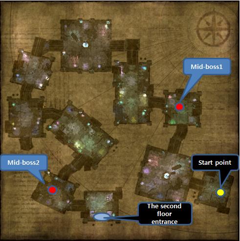 แผนที่ ภายในดันเจี้ยน Forgotten Temple Guild Dungeon ชั้นที่ 1