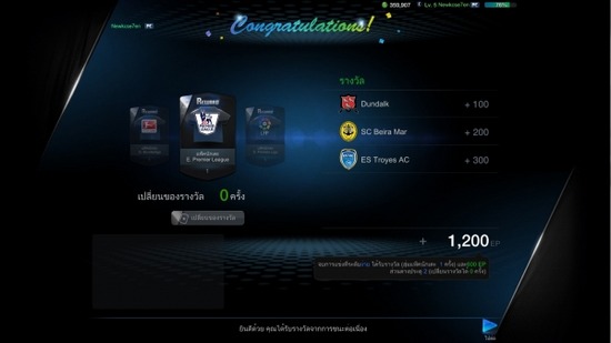 โหมดคุมทีมหลังจบเกมส์การแข่งขัน ผู้เล่นก็รับของรางวัลไปเลยเหมือนปกติตอนเล่นในโหมดอื่นๆ ของเกมส์ FIFA Online 3