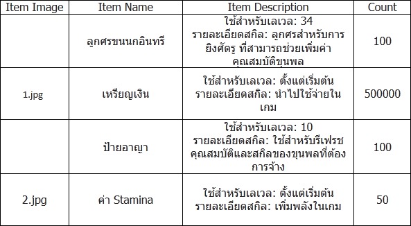 โดย 1 Code ประกอบด้วยไอเทมดังนี้