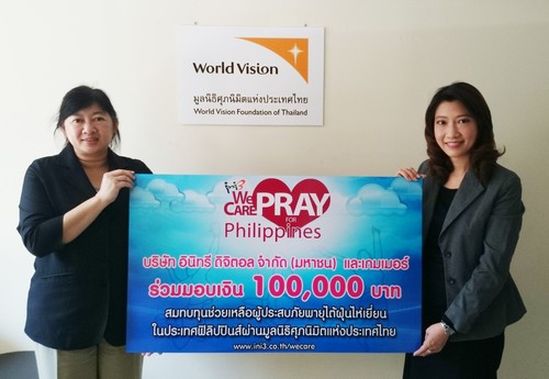 หลังจากที่ บริษัทอินิทรี ดิจิตอล จำกัด(มหาชน) ได้จัดกิจกรรม Ini3 we care…We Pray For Philippines ระดมพลังน้ำใจครั้งใหญ่จากเกมเมอร์ในการร่วมเติมเงินเข้าทุกเกม ทุกโปรโมชั่น ในช่วงวันที่ 16 – 20 พฤศจิกายน 2556 ที่ผ่านมา เพื่อปณิธานในการนำรายได้ส่วนหนึ่งหลักหักค่าใช้จ่าย ช่วยเหลือเพื่อนบ้านชาวฟิลิปปินส์ที่กำลังประสบกับภัยพิบัติจากพายุไต้ฝุ่นไห่เยี่ยน ซึ่งสร้างความเสียหายให้กับชีวิตและทรัพย์สิน ของชาวฟิลิปปินส์เป็นอย่างมาก
