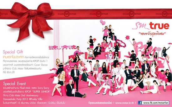 สุดพิเศษ กับการสร้างตำนาน Flash Mob ต้อนรับค่ายเพลงใหม่ในเกม กับเพลงที่ทุกคนรู้จักกันดี กับเพลง “Sorry Sorry” เพลงของศิลปีนที่ชาว ClubMstar รอคอยมากที่สุด “Super Junior” เตรียมสร้างตำนานบทใหม่พร้อมกัน ในงาน Club Mstar 2nd Anniversary Danceaholic Party 2013 @Funky villa ในวันอาทิตย์ที่ 15 ธันวาคมนี้ ตั้งแต่เวลา 12.00น. เป็นต้นไป