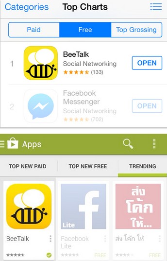 สัปดาห์ที่ผ่านมา แอพพลิเคชั่น BeeTalk ได้รับการตอบรับที่ดีมากทั้งใน iOS App Store และ Google Play Store ประเทศไทย เพียงไม่กี่วันหลังจากเปิดตัว BeeTalk ก็ได้ขึ้นแท่นแอพพลิเคชั่นอันดับ 1 ใน iOS App Store และเป็นหนึ่งในโปรแกรมที่มาแรงที่สุดใน Google Play Store