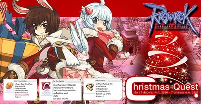เริ่มด้วยทางฝั่งของ Ragnarok ขนไอเทมสุดน่ารักมาแจกเพียบได้กันแบบง่ายๆ กับกิจกรรม “Christmas Quest เทศกาลแห่งความสุข” ที่เพียงแค่ผ่านเควสก็จะได้รับ Solo Christmas Gift 1 ea. โดยมีโอกาสสุ่มได้รับ Custom Cat Santa Hat 1 ea., Solo Cookie 5 ea., Solo Troops Badge 1 ea.และไอเทมอื่นๆ อีกมากมาย