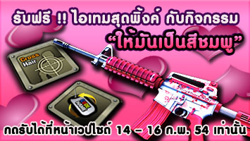SF จัดกิจกรรมต้อนรับวันวาเลนไทน์ วันที่ 14 – 16 ก.พ. ขอเชิญเพื่อนๆ มาร่วมฉลองวันแห่งความรัก ให้หวานกว่าใคร ในกิจกรรมสุดพิ้งค์ “ให้มันเป็นสีชมพู” ให้เพื่อนๆ ได้ร่วมสนุกกับวันแห่งความรักสุดหวานในรูปแบบของ Special Force โดยมีวิธีการง่ายๆ คือ Login ที่หน้ากิจกรรมและรับไปเลยไอเทม Cutie M4A1, Color Code Name, Cross Hair