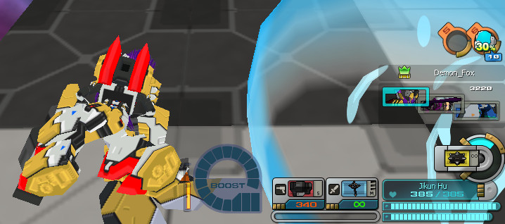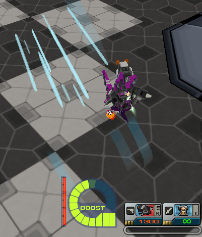 - Accele Roll เหมาะสำหรับหุ่นที่เคลื่อนไหวช้า ใช้ในการหมุนตัวไปด้านข้าง เพื่อหลบกระสุนหรือมิสไซต์ที่พุ่งมาจากด้านหน้า หรือด้านหลัง ซึ่งในจังหวะนี้สามารถสวนกลับด้วยการยิงโจมตีได้
