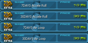 ไอเทมทั้งสองมีชื่อว่า Accele Roll และ Air Loop ซึ่งมีทั้งแบบจำกัดระยะเวลา 7 วันและ 30 วัน ให้เลือกใช้งาน ข้อแตกต่างก็คือ Air Loop สามารถใช้ได้เฉพาะหุ่น Air Type เท่านั้น ในขณะที่ Accele Roll สามารถติดตั้งได้กับหุ่นทุก Type โดยทั้ง 2 สกิลนั้นต้องการค่า Cost 30 หน่วยในการติดตั้ง