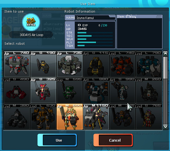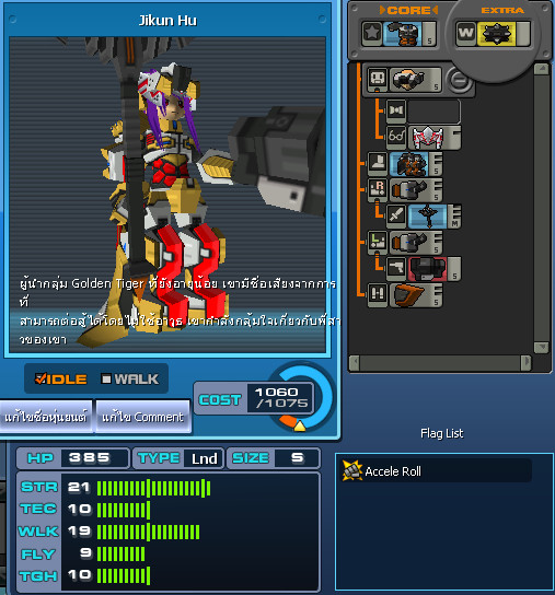 3. เลือก หุ่นที่ต้องการติดตั้ง ซึ่งขั้นตอนนี้ระบบจะดูเฉพาะ Type ที่สามารถติดตั้งได้ โดยไม่สนใจค่า Cost ที่มีอยู่ว่าเพียงพอหรือไม่