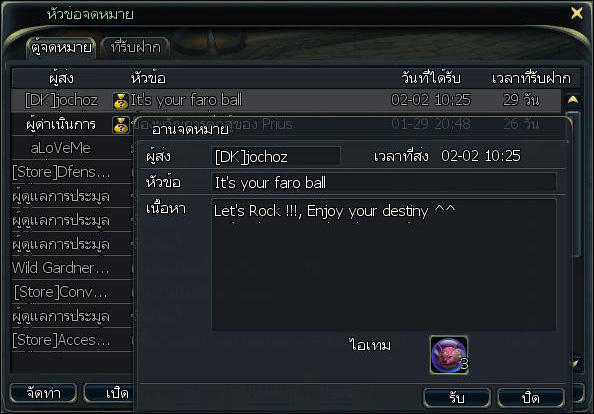 เปิดจดหมายจาก [DK]Jochoz และคลิกที่ปุ่ม “รับ”