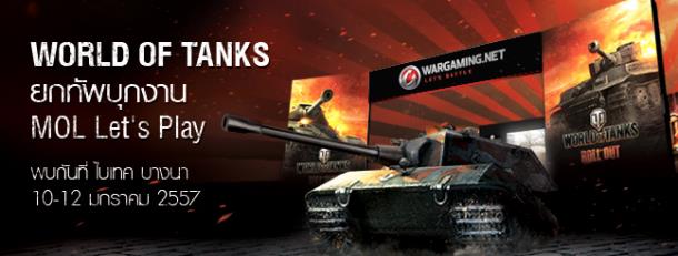 Wargaming ยกทัพเกม World of Tanks เคลื่อนพล มอบความมันส์แบบจุใจในงาน MOL Let’s Play 2014 ในวันเด็กแห่งชาติวันที่ 10 – 12 มกราคมนี้ ที่ไบเทค บางนา สาวก World of Tanks เตรียมพบกับกิจกรรมการแข่งขันอีสปอร์ตสุดระทึก และของพรีเมี่ยมมากมายที่ทีมงานเตรียมไปมอบให้แบบไม่หมดไม่เอากลับ! ทั้งเสื้อโปโล หมวก เสื้อยืด ร่ม ปฏิทินปี 2014 แผ่นรองเมาส์ เข็มกลัด สำหรับชาว World of Tanks โดยเฉพาะ!