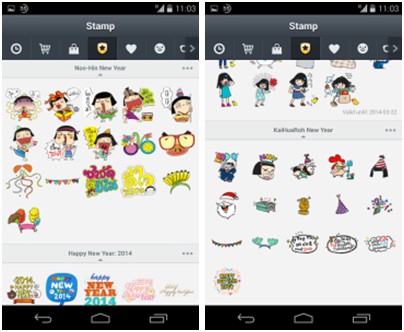 โดย Stamp ชุด KaiHuaRoh New Year และ Noo-Hin New Year เริ่มเปิดให้ดาวน์โหลดเมื่อวันที่ 31 ธันวาคม 56 ที่ผ่านมา และมียอดดาว์นโหลดของแต่ละชุดกว่า 1 แสนครั้งภายในเวลาอันรวดเร็ว