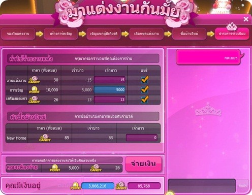 จองวันแต่งงาน > สร้างการ์ดเชิญ > เชิญแขก > เลือกชุดแต่งงาน > ซื้อบ้านใหม่ > ชำระค่าธรรมเนียม