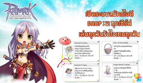 2. รับอัตราการ Drop Item x 2 ทุกเซิร์ฟ