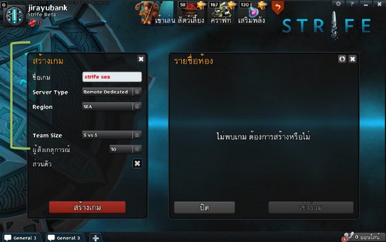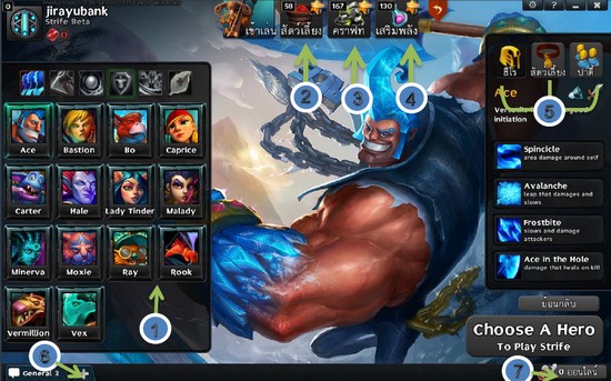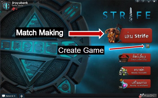 หลังจากทำการเลือกฮีโร่เสร็จแล้วก็ กดปุ่ม เล่น strife เริ่มทำการจับคู่