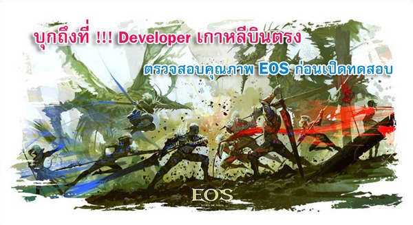 งานนี้ทาง Developer ของเกม EOS Online จากประเทศเกาหลีบินตรงถึงประเทศไทย พร้อมผนึกกำลังกับทีมงานพร้อมตรวจสอบคุณภาพในด้านต่างๆ ก่อนเปิดให้ทดสอบ เรียกได้ว่าทางเกาหลีตรวจสอบละเอียดในทุกส่วนเลยทีเดียว