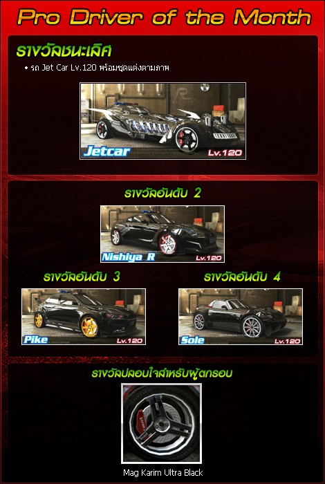 ของรางวัลสำหรับ Pro Driver of The Month