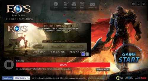 เมื่อตัวเกมทำการโหลด Auto Patch และ เช็คความเรียบร้อยครบถ้วนแล้ว กด “Game Start” เพื่อเข้าสู่เกม