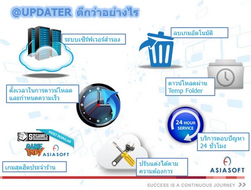 บริษัท เอเชียซอฟท์ คอร์ปอเรชั่น จำกัด (มหาชน) เปิดให้ใช้งาน @UPDATER โปรแกรม AUTO UPDATE สำหรับร้านเกมยุคใหม่ ที่จะช่วยให้เจ้าของร้านเกม ลดค่าใช้จ่าย ลดขั้นตอนการจัดการเกมในร้าน อัพเดทเกมรวดเร็วทันใจ “ทุกค่ายทุกเกม” อัพเดทเกมง่ายๆ แค่ปลายนิ้ว