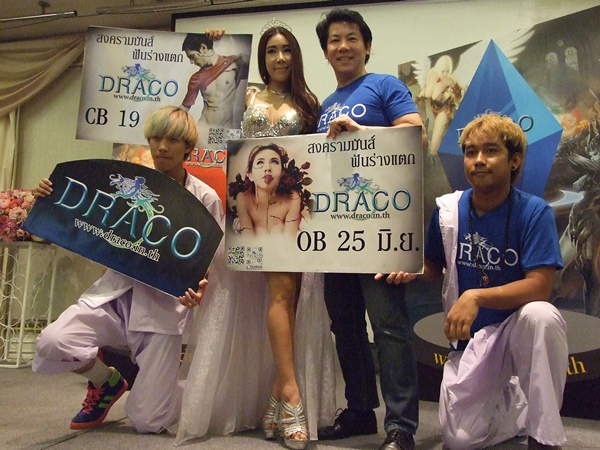 วันนี้ 11 มิถุนายน 2557 ทาง Winner Online ได้จัดงานแถลงข่าวเปิดตัวเกมส์ออนไลน์ตัวใหม่ล่าสุดของค่าย Draco ขึ้นที่ โรงแรมใบหยก สกาย ชั้น 17 ห้องเรนโบว์ 2 เริ่มงานมาด้วยการเปิดคลิปวิดีโอเกมส์ Draco พร้อมเผนถึงจุดเด่นและทีเด็ดต่างๆของเกมส์อย่างละเอียด สำหรับ Draco เป็นเกมส์ออนไลน์สาย Hardcore ขนานแท้เพราะเกมส์จะเปิดระบบ Free PK ทันทีเมื่อท่านมีเลเวล 20 ยิ่งคุณจัดการผู้เล่นคนอื่นมากชื่อคุณจะมีสีเปลี่ยนไปจาก ขาว>>ส้ม>>แดง>>ม่วง แต่จำไว้นิดนะครับยิ่งอยู่ในระดับสูงคุณยิ่งมีโอกาศเสียไอเทมในตัวมากขึ้น ไม่เจ๋งจริงอย่าได้ซ่าเด็ดขาด อาจมีน้ำตาตกกันได้