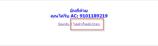 ใส่รหัส AC ที่เพื่อนๆ ได้มา เพียงเท่านี้เพื่อนๆ ก็จะมี Item สนับสนุนขั้นเทพในช่วง CBT กันแล้ว สำหรับเพื่อนที่มี AC ในครอบครองแล้วนั้นกิจกรรมทางหน้าเว็บและแฟนเพจก็มีอีกมากมายด้วยเช่นกัน สามารถติดตามข่าวสารเกมออนไลน์ใหม่ Draco ได้ทีนี่ www.draco.in.th และแฟนเพจ www.facebook.com/dracoth