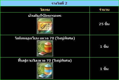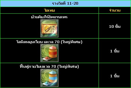 • 1. – จะต้องมีตัวละครเลเวล 60 ขึ้นไป ภายในวันที่ 14 มีนาคม 2554 (เวลา MA 7.00น.)