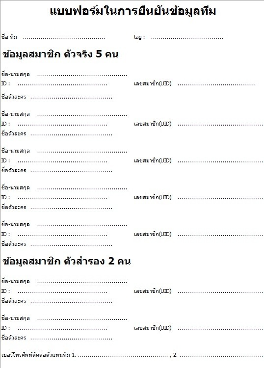 ดาวน์โหลดเอกสารแบบฟอร์มเพื่อยืนยันข้อมูลทีม