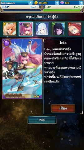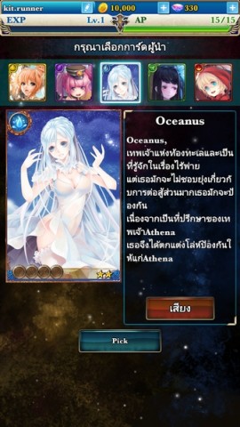 เริ่มต้นเราจะได้เลือกสาวน้อยแห่งทวยเทพได้ 5 องค์ได้แก่