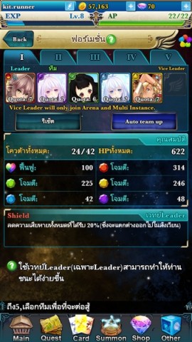 ในการจัดทีมจะเหมือนกับเกม Puzzle ทั่วไปนั่นคือ เราสามารถเลือกได้ 5 ใบ โดยจะต้องไม่เกินค่า Cost (โควตา)สูงสุดของเรา และเมื่อเริ่มเควสเราจะเลือกเพื่อนสนับสนุนได้อีก 1 คน