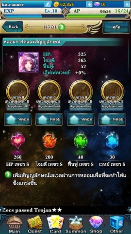 เราสามารถเพิ่มค่าพลังของการ์ดโดยตรงได้ โดยการนำเพชรสีต่างๆมาหลอมเข้ากับการ์ด โดยเพชรสีต่างๆจะมีค่าพลังที่ไม่เหมือนกัน ยิ่งหลอมหลายครั้งก็จำเป็นจะต้องใช้การ์ดที่มากขึ้น เราสามารถหาเพชรสีต่างๆได้จาก ด่านทั่วไป กิจกรรม หรือ ซื้อจาก Shop